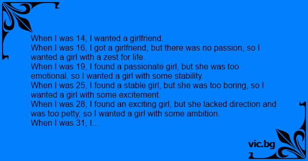 When I was 25, I found a stable girl, but she was too boring, so I wanted a girl with some excitement.