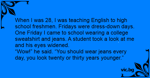 “Wow!” he said. “You should wear jeans every day, you look twenty or thirty years younger.”