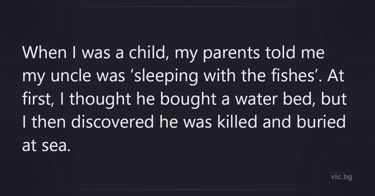 When I was a child, my parents told me my uncle was ‘sleeping with the fishes’. At first, I thought he bought a water bed, but I then discovered he was killed and buried at sea.