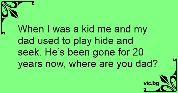 When I was a kid me and my dad used to play hide and seek. He’s been gone for 20 years now, where are you dad?