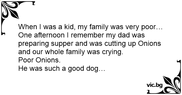 One afternoon I remember my dad was preparing supper and was cutting up Onions and our whole family was crying.