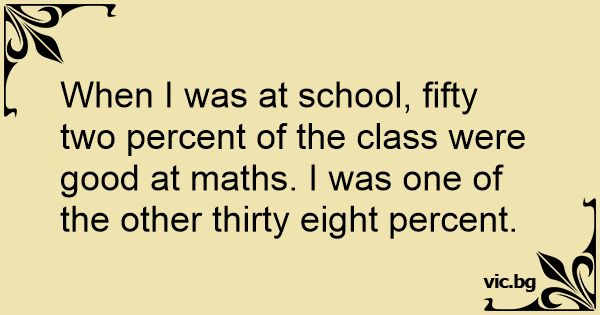 When I was at school, fifty two percent of the class were good at maths. I was one of the other thirty eight percent.