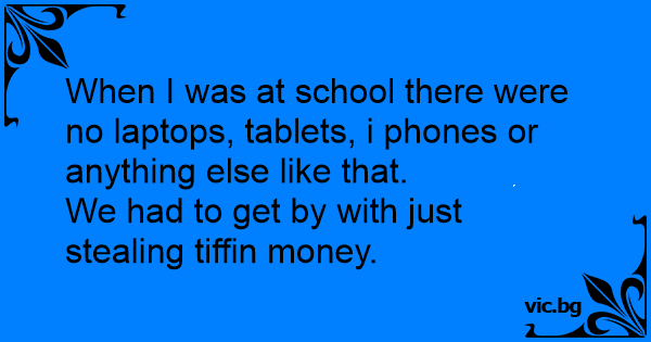 When I was at school there were no laptops, tablets, i phones or anything else like that.