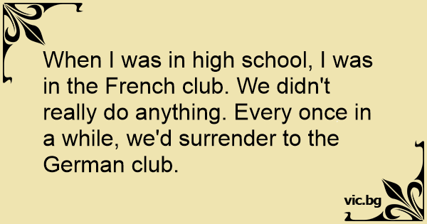 When I was in high school, I was in the French club. We didn't really do anything. Every once in a while, we'd surrender to the German club.