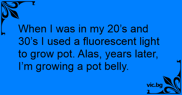 When I was in my 20’s and 30’s I used a fluorescent light to grow рот. Alas, years later, I’m growing a рот belly.