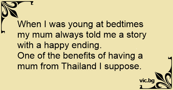 When I was young at bedtimes my mum always told me a story with a happy ending.