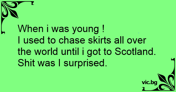I used to chase skirts all over the world until i got to Scotland.