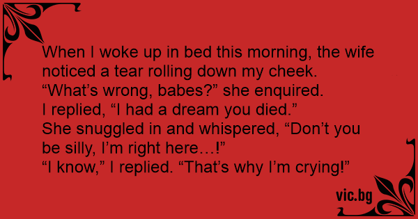 When I woke up in bed this morning, the wife noticed a tear rolling down my cheek.