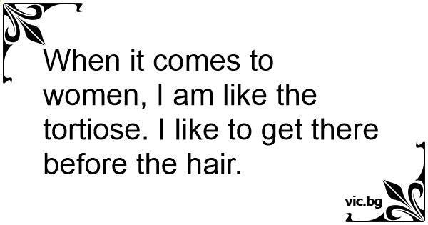 When it comes to women, I am like the tortiose. I like to get there before the hair.