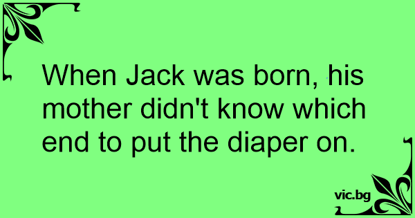 When Jack was born, his mother didn't know which end to put the diaper on.