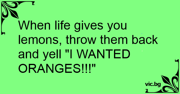 When life gives you lemons, throw them back and yell "I WANTED ORANGES!!!"