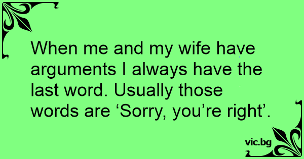 When me and my wife have arguments I always have the last word. Usually those words are ‘Sorry, you’re right’.