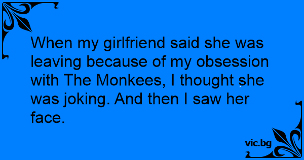 When my girlfriend said she was leaving because of my obsession with The Monkees, I thought she was joking. And then I saw her face.