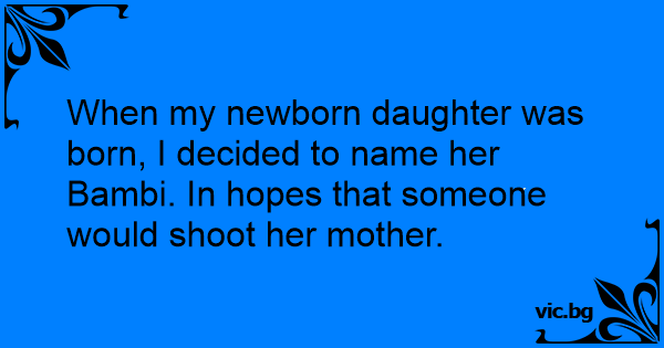 When my newborn daughter was born, I decided to name her Bambi. In hopes that someone would shoot her mother.