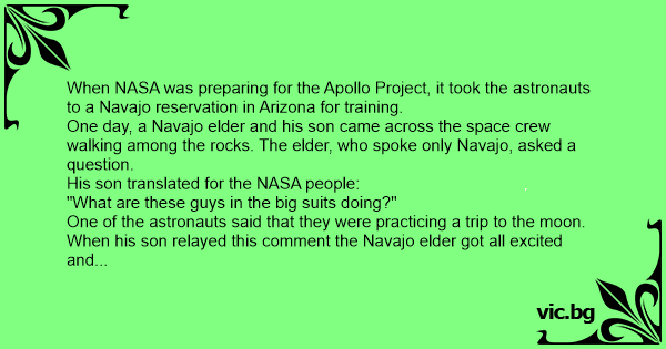 So the NASA people took the tape to a nearby Navajo village and played it for other members of the tribe. They too laughed long and loudly but also refused to translate the elder’s message to the moon.