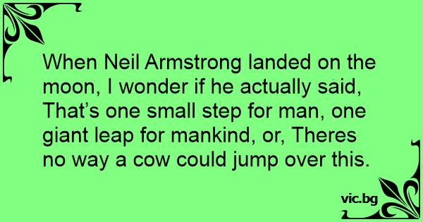 When Neil Armstrong landed on the moon, I wonder if he actually said, That’s one small step for man, one giant leap for mankind, or, Theres no way a соw could jump over this.