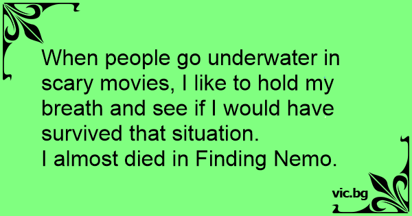 When people go underwater in scary movies, I like to hold my breath and see if I would have survived that situation.