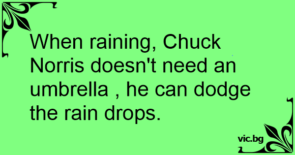 When raining, Chuck Norris doesn't need an umbrella , he can dodge the rain drops.