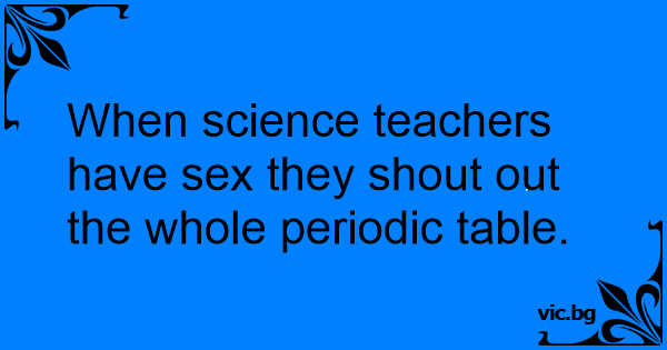 When science teachers have sеx they shout out the whole periodic table.
