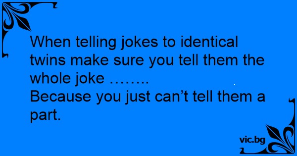 When telling jokes to identical twins make sure you tell them the whole joke ……..