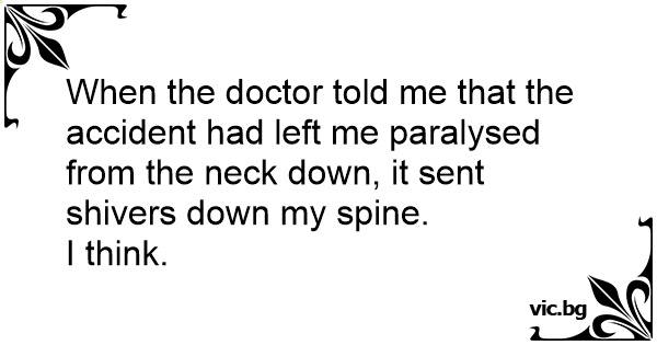 When the doctor told me that the accident had left me paralysed from the neck down, it sent shivers down my spine.<br />I think.