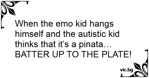 When the emo kid hangs himself and the autistic kid thinks that it’s a pinata… BATTER UP TO THE PLATE!