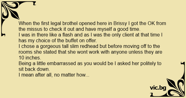 When the first legal brothel opened here in Brissy I got the OK from the missus to check it out and have myself a good time.