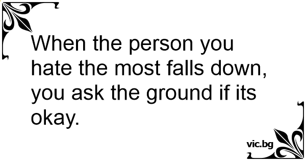 When the person you hate the most falls down, you ask the ground if its okay.