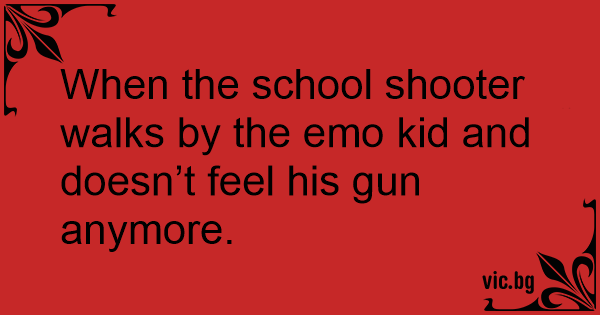 When the school shooter walks by the emo kid and doesn’t feel his gun anymore.