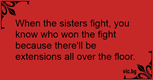 When the sisters fight, you know who won the fight because there'll be extensions all over the floor.