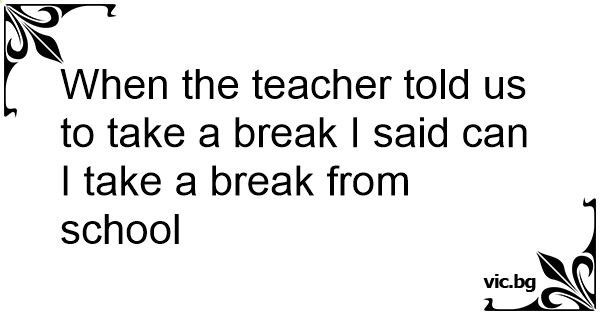When the teacher told us to take a break I said can I take a break from school