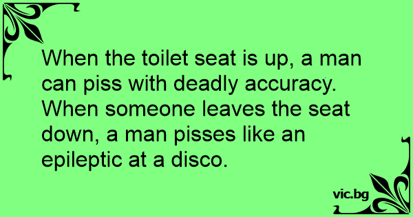 When the toilet seat is up, a man can рiss with deadly accuracy.
