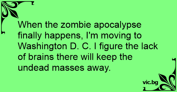 When the zombie apocalypse finally happens, I'm moving to Washington D. C. I figure the lack of brains there will keep the undead masses away.