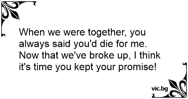 When we were together, you always said you'd die for me. Now that we've broke up, I think it's time you kept your promise!