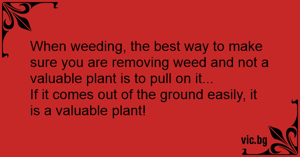 When weeding, the best way to make sure you are removing wееd and not a valuable plant is to pull on it...