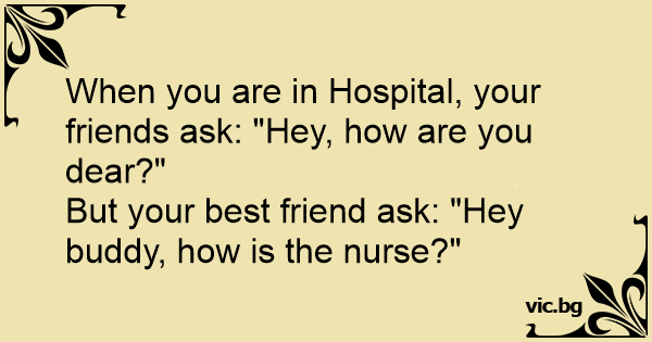 When you are in Hospital, your friends ask: "Hey, how are you dear?"