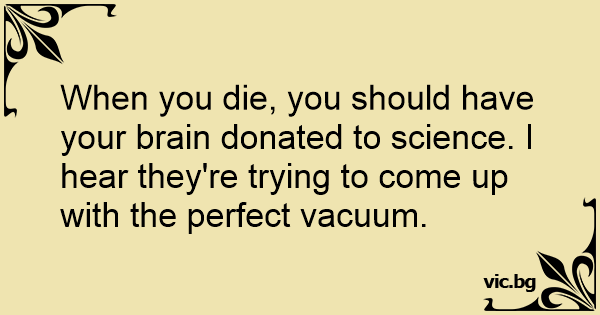 When you die, you should have your brain donated to science. I hear they're trying to come up with the perfect vacuum.