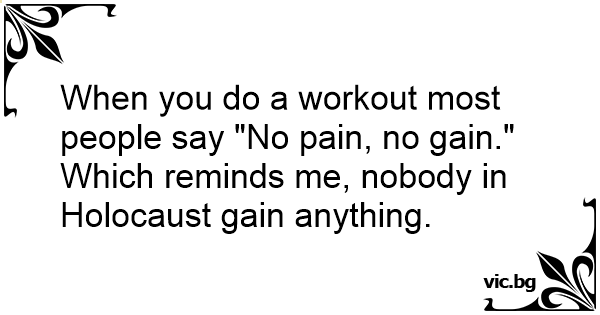 When you do a workout most people say "No pain, no gain." Which reminds me, nobody in Holocaust gain anything.