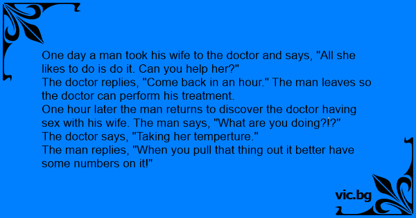 One day a man took his wife to the doctor and says, "All she likes to do is do it. Can you help her?"
