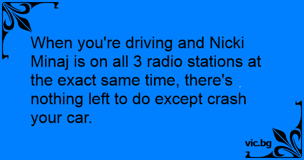 When you're driving and Nicki Minaj is on all 3 radio stations at the exact same time, there's nothing left to do except crash your car.