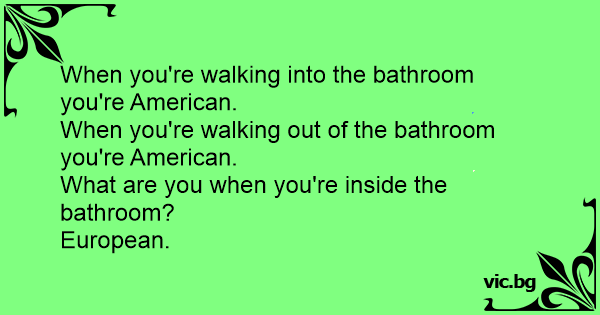 When you're walking into the bathroom you're American.