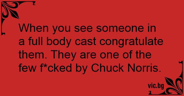 When you see someone in a full body cast congratulate them. They are one of the few f*cked by Chuck Norris.