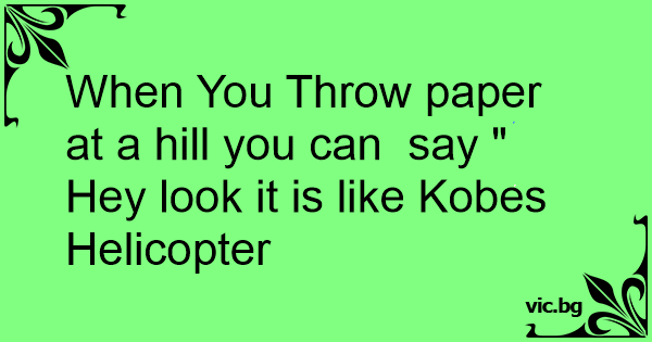 When You Throw paper at a hill you can say " Hey look it is like Kobes Helicopter