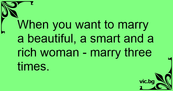 When you want to marry a beautiful, a smart and a rich woman - marry three times.
