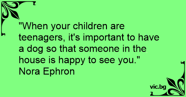 "When your children are teenagers, it's important to have a dog so that someone in the house is happy to see you."