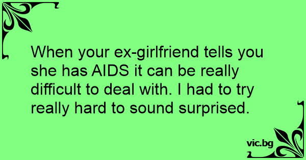 When your ex-girlfriend tells you she has AIDS it can be really difficult to deal with. I had to try really hard to sound surprised.
