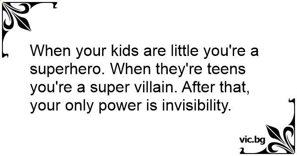 When your kids are little you're a superhero. When they're teens you're a super villain. After that, your only power is invisibility.