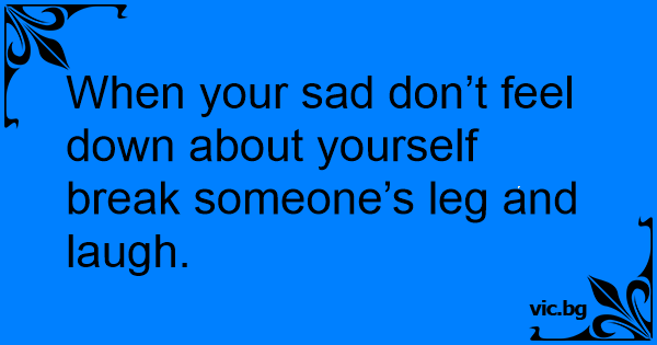 When your sad don’t feel down about yourself break someone’s leg and laugh.