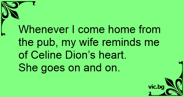 Whenever I come home from the pub, my wife reminds me of Celine Dion’s heart.