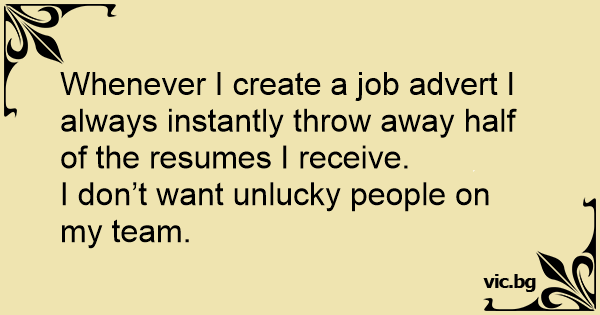 Whenever I create a job advert I always instantly throw away half of the resumes I receive.